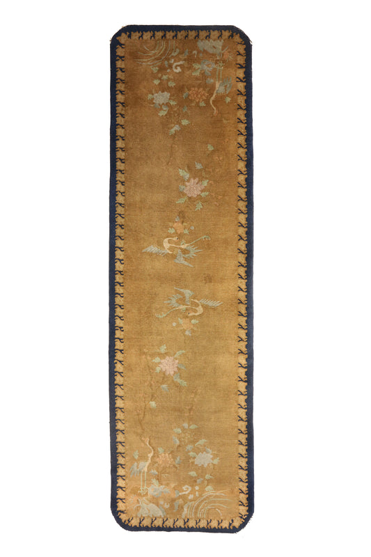 Decò "Walter Nichols" runner with crane and flower design in rare size and mint condition